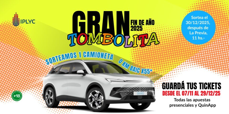 La última Tombolita de 2025 premiará a sus seguidores con un automóvil 0 kilómetro, a fin que comiencen el nuevo año “sobre ruedas”. De este fabuloso sorteo podrán participar los tickets no premiados de las apuestas de Quiniela confeccionados para todos los sorteos: La Previa, la Primera Matutina, la Matutina, la Matutina Plus, la Misionerita Vespertina, la Nocturna y la Nocturna Plus, realizadas de manera presencial u online -en el sitio www.quinapp.bet.ar-, también de la Quiniela Poceada Misionera y la Quiniela Mini Poceada Misionera.