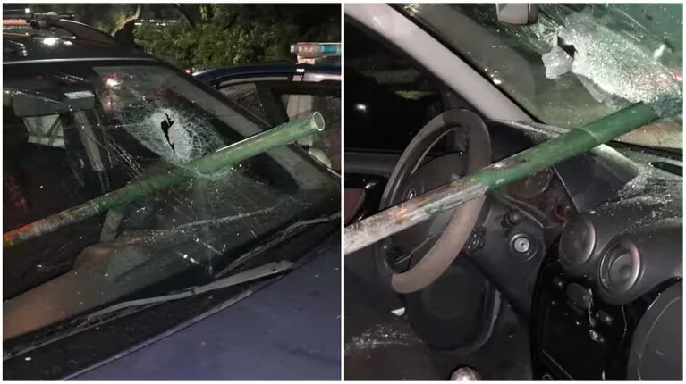 Cerca de las 20 del lunes, el hombre estaba llegando a su trabajo cuando, de repente, vio que el vidrio delantero de su auto estallaba. Enseguida quedó estupefacto al descubrir la causa del incidente. “Cuando vi ese caño enorme al lado mío no lo podía creer. Siento que volví a nacer”, relató a “Mediodía Noticias”, por eltrece.