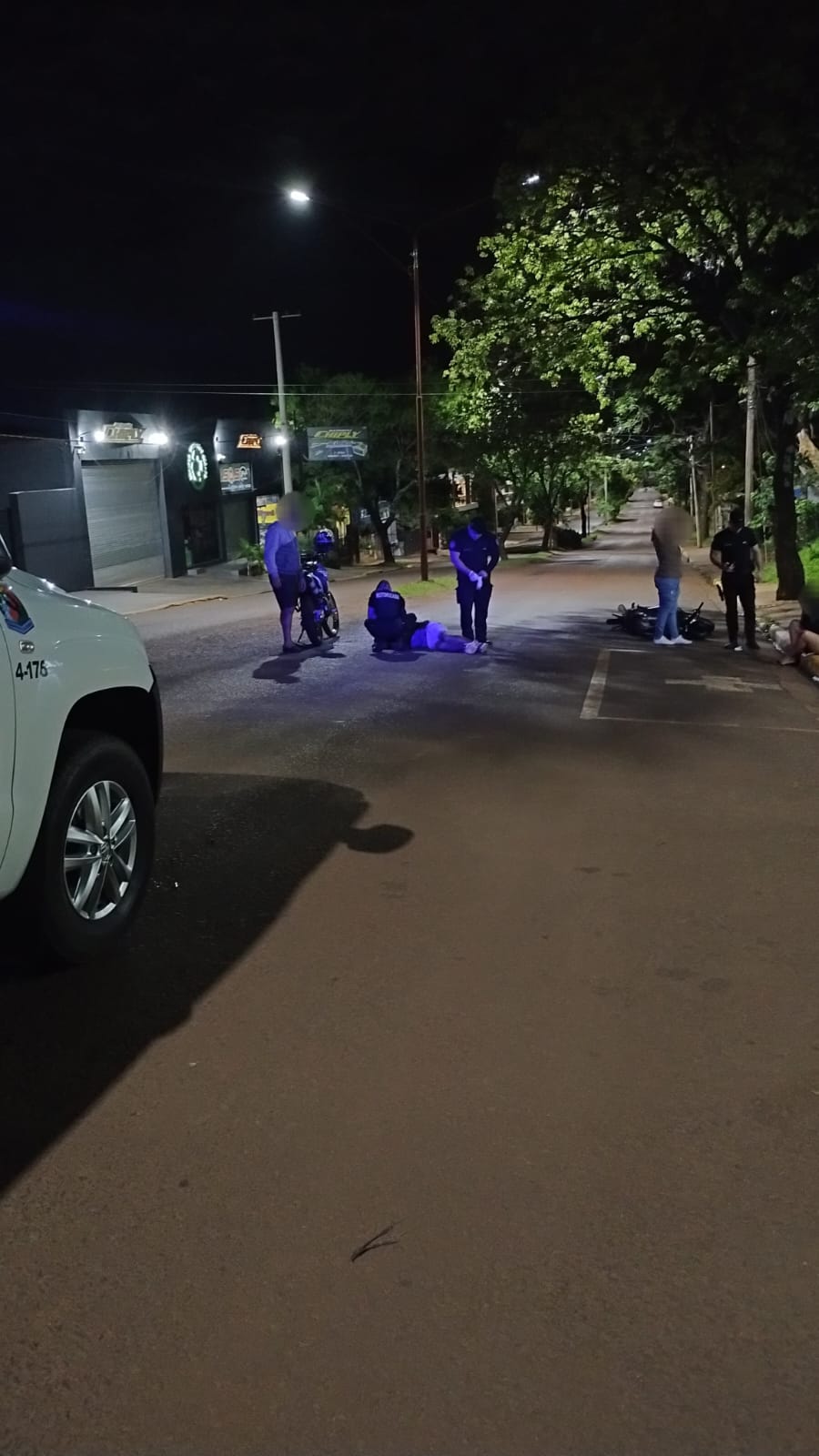 En el lugar, una motocicleta Motomel Blitz conducida por Matías F. (28), quien iba acompañado por Fátima P. (32), ambos domiciliados en Bonpland, perdió el control y terminó despistando por causas que se tratan de establecer.