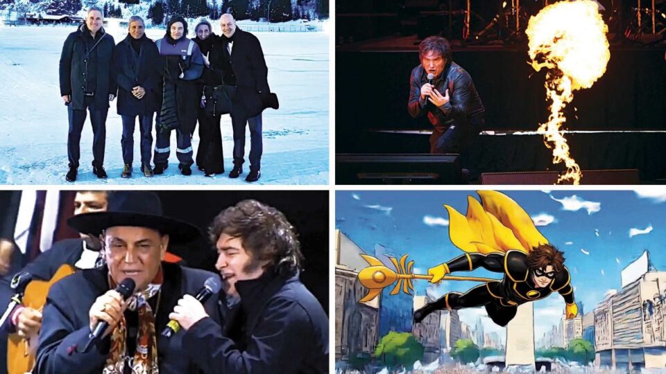 Mientras por un lado agita la violencia con invitaciones permanentes a “odiar más” y compara a sus rivales con monos o cucarachas, por el otro ofrece circo: el recital en el Movistar Arena, su show en el festival de Jesús María, una aparición en un canal de streaming oficialista junto a su perro clonado, un beso fogoso con su entonces pareja en un teatro costero, cuadros en la Quinta de Olivos donde se compara con Wolverine y con un león, una bizarra cuenta en inglés presentada mediante un cómic donde aparece volando sobre Buenos Aires como superhéroe. A esta lista se suma su escasa preocupación por la higiene y el recambio de vestuario —con el mameluco de YPF como emblema, incluso en Davos— y su llanto desconsolado en el Muro de los Lamentos, una postal inédita para un presidente argentino.