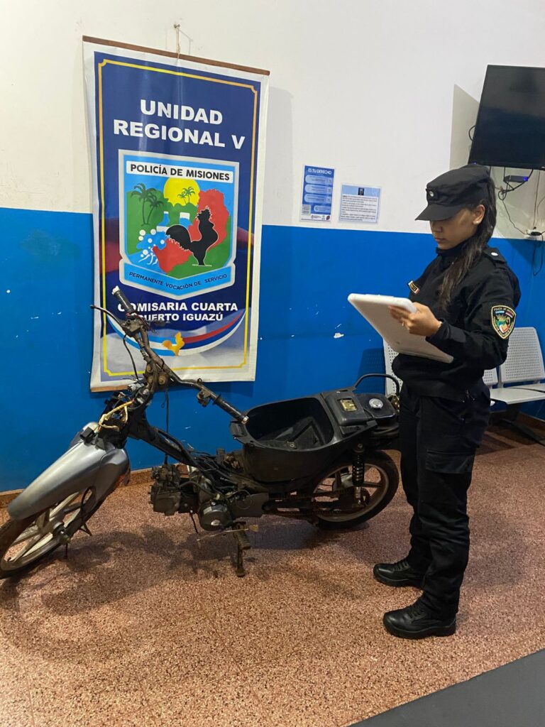Asimismo, en Puerto Iguazú, personal de la Comisaría de la Mujer incautó una motocicleta Guerrero Trip 110 cc con pedido de secuestro por robo. El rodado fue hallado abandonado en inmediaciones del tanque del IMAS tras una persecución, luego de que dos individuos huyeran del lugar al advertir la presencia policial. Tras las verificaciones correspondientes, se constató que el vehículo había sido robado el 16 de octubre, avanzándose en la identificación de los sospechosos.