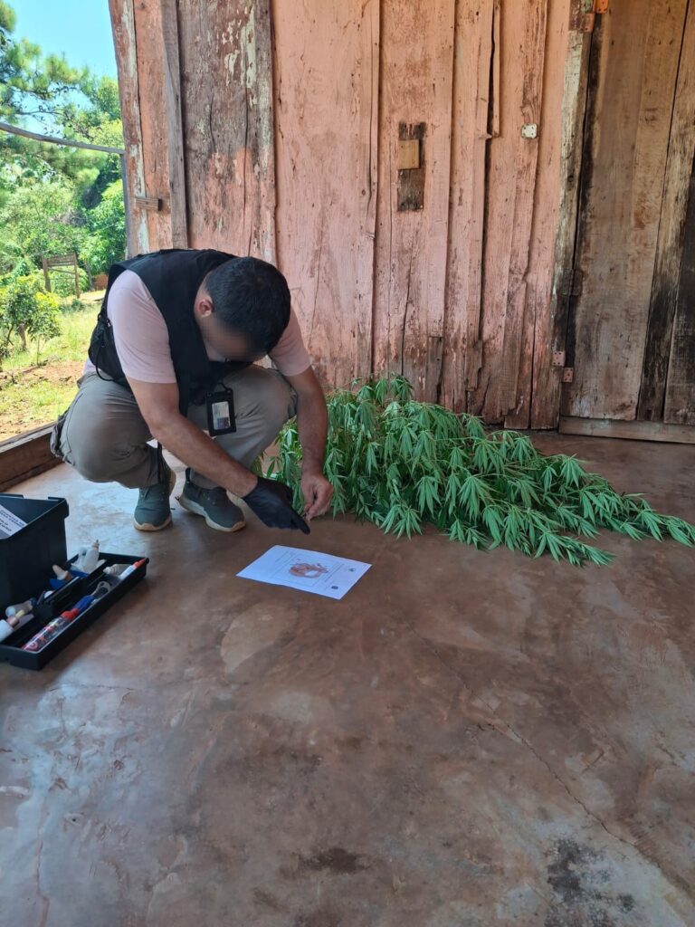 Tras efectuarse las consultas con la Fiscalía y el Juzgado Federal de Oberá, se dispuso el secuestro de dos plantas, las cuales fueron sometidas a test orientativo que arrojó resultado positivo para Cannabis Sativa. Asimismo, se incautó sustancia vegetal seca con un peso total de 11,36 kilogramos.