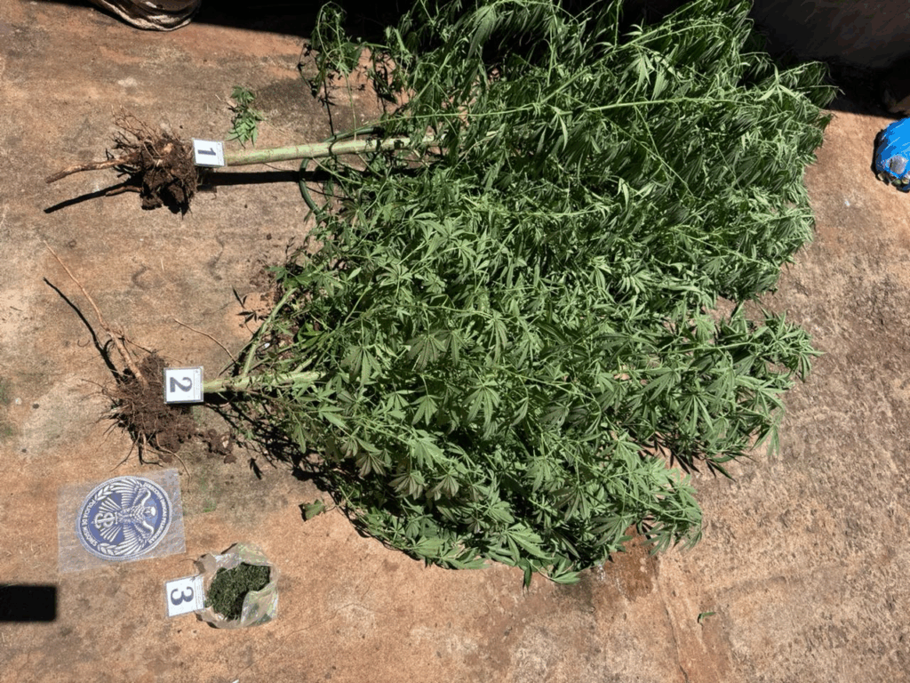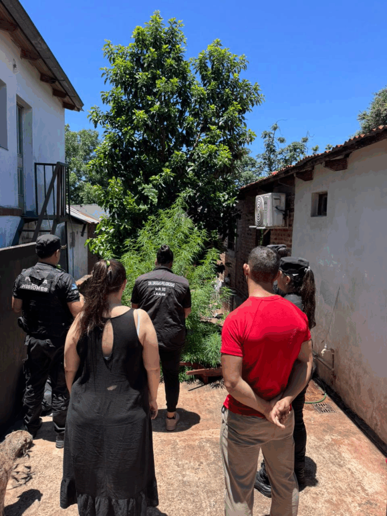 Tras efectuarse las consultas con la Fiscalía y el Juzgado Federal de Oberá, se dispuso el secuestro de dos plantas, las cuales fueron sometidas a test orientativo que arrojó resultado positivo para Cannabis Sativa. Asimismo, se incautó sustancia vegetal seca con un peso total de 11,36 kilogramos.