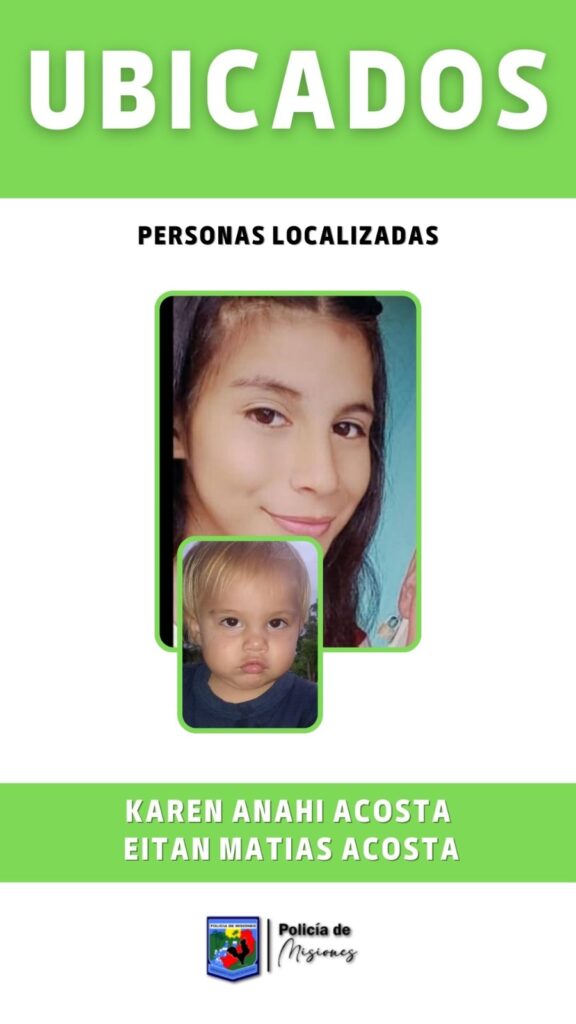 Menor desparecida junto con su bebé fueron localizados 18 enero, 202618 enero, 2026 Karen Anahí Acosta y Eitan Matías Acosta desaparecidos el 14 de enero fueron ubicados