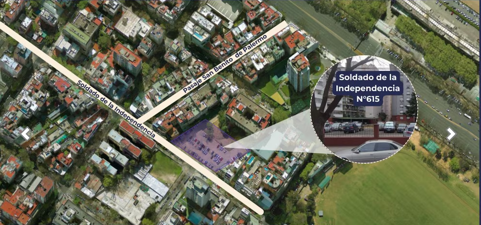 Se trata de un predio de casi 2.090 m2 en la zona de Plaza San Martín que cuenta con varias propiedades, donde funcionan estacionamientos y depósitos, y está rodeado de edificios emblemáticos y elegantes de la Ciudad como el Kavanagh, el Palacio Paz del Círculo Militar, el Palacio Anchorena que pertenece al Ministerio de Relaciones Exteriores, y el Edificio Plaza San Martín.