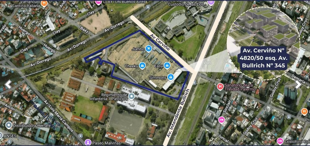 La propiedad tiene casi 42.000 m2 estratégicamente ubicados, y en el lugar actualmente opera el complejo comercial Portal Palermo, que alberga al hipermercado Jumbo, la tienda Easy y un shopping con decenas de locales comerciales, que es explotado actualmente por el grupo chileno Cencosud, y cerrará sus puertas el mes próximo.