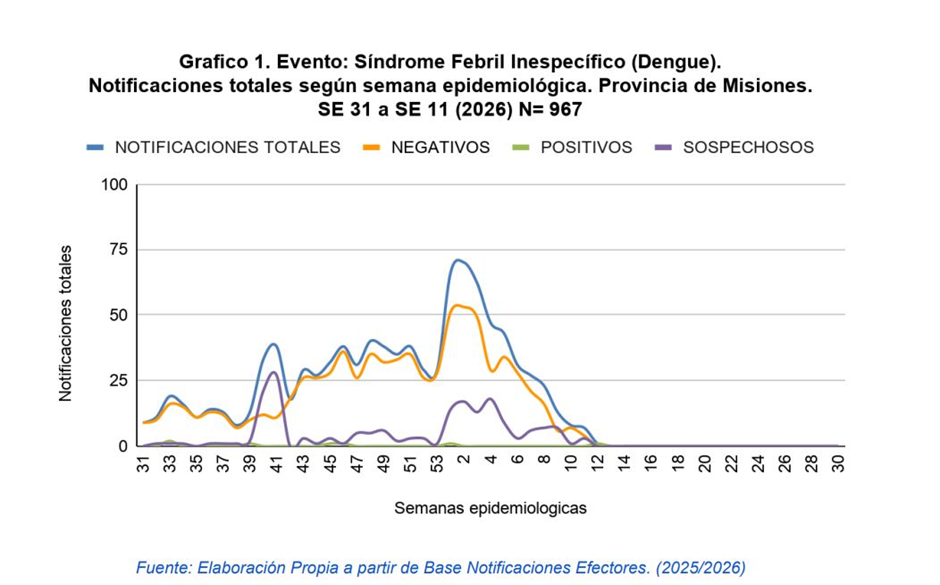 La provincia de Misiones cerró el verano 2026 sin casos autóctonos de dengue, según el último reporte del Ministerio de Salud Pública de Misiones. El informe, elaborado por la Dirección de Epidemiología, abarca el período comprendido entre la semana epidemiológica 31 de 2025 y la semana 11 de 2026.