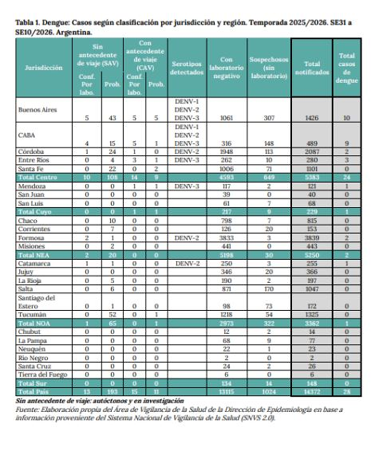 Los últimos reportes oficiales confirmaron que la provincia no registró contagios autóctonos en la temporada 2025/2026. Aunque hubo notificaciones sospechosas, todas fueron descartadas por laboratorio.
