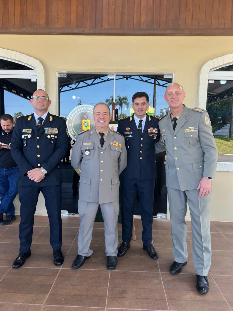 En el acto, el Coronel PM André Lima da Silva entregó la conducción al Coronel PM Rafael Luft, en una ceremonia que reafirmó la continuidad institucional, el compromiso con la seguridad pública y la integración regional.
