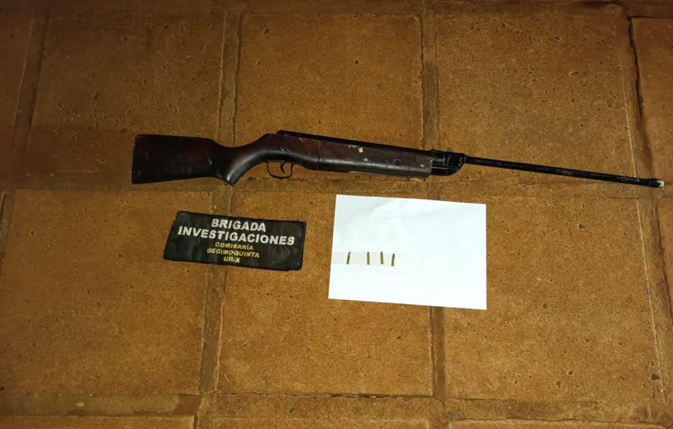 Una vez en el lugar, los uniformados procedieron a la aprehensión del implicado, identificado como Yonathan R., quien tenía en su poder un rifle de aire comprimido modificado para calibre .22 y cuatro proyectiles.
