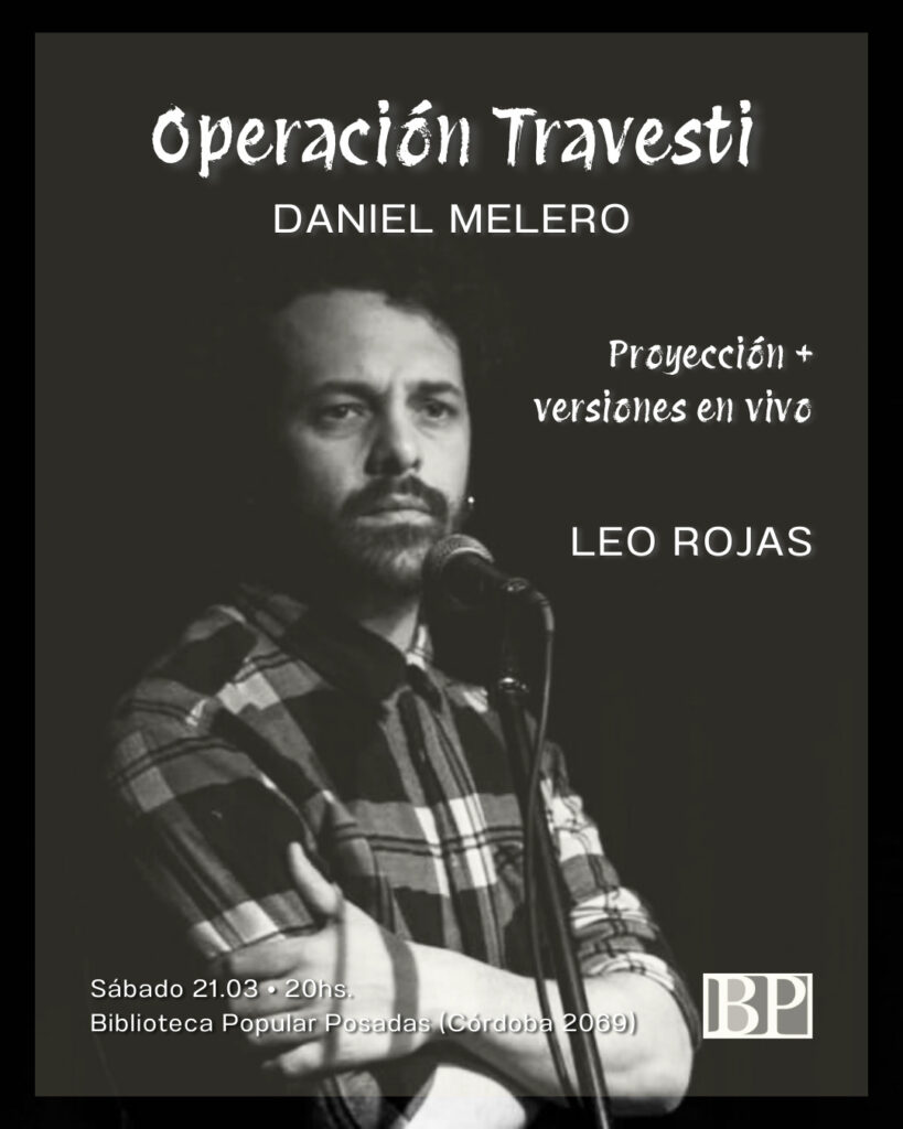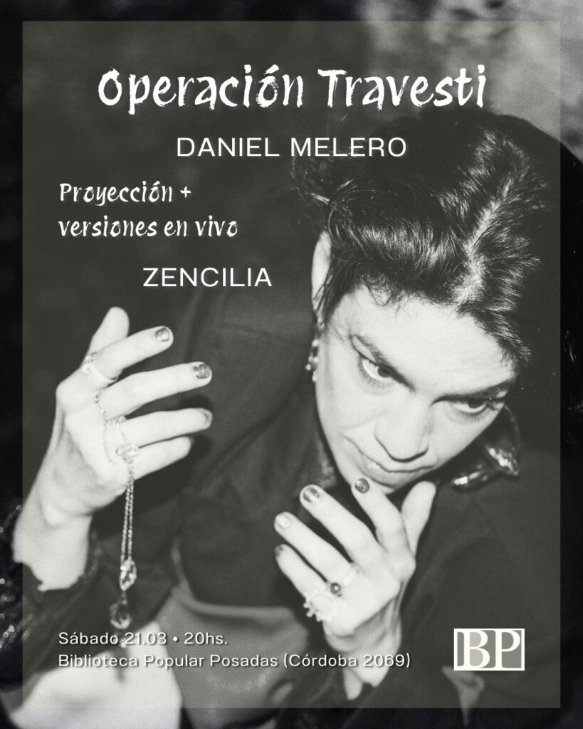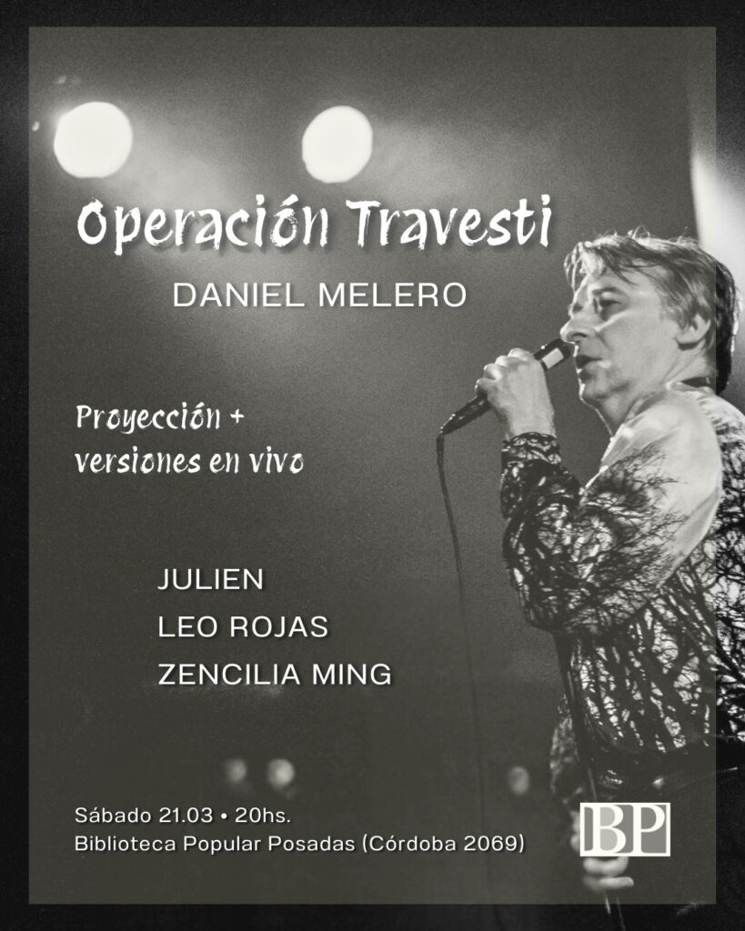 El próximo sábado 21 de marzo, a las 20:00 horas el auditorio de la Biblioteca Popular de Posadas (Córdoba 2069), será escenario de una velada única, la proyección del documental “Operación Travesti” (2023), dirigida por Rodrigo Ottaviano, seguida por un set de versiones en vivo a cargo de Julien, Leo Rojas y Zencilia Ming.