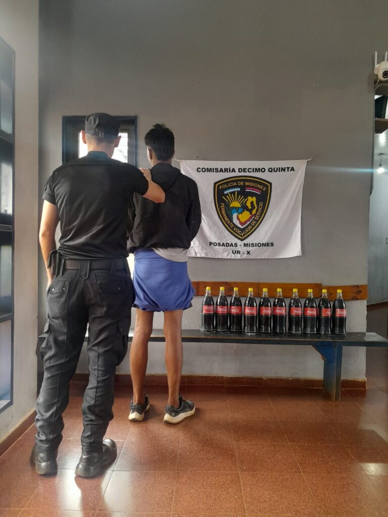 Tras la denuncia del damnificado y el análisis de las cámaras de seguridad, los uniformados iniciaron un operativo que permitió aprehender al implicado y recuperar diez envases de vidrio de 1,5 litros pertenecientes al local. El detenido fue puesto a disposición del Juzgado de Instrucción en turno.
