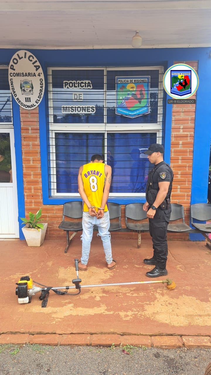 La Policía de Misiones recuperó una desmalezadora robada y detuvo a un hombre de 28 años que habría sustraído y comercializado una herramienta de trabajo. Se trata de “Tuki”, apodo que vuelve a surgir en maniobras vinculadas a robos registrados en Eldorado.