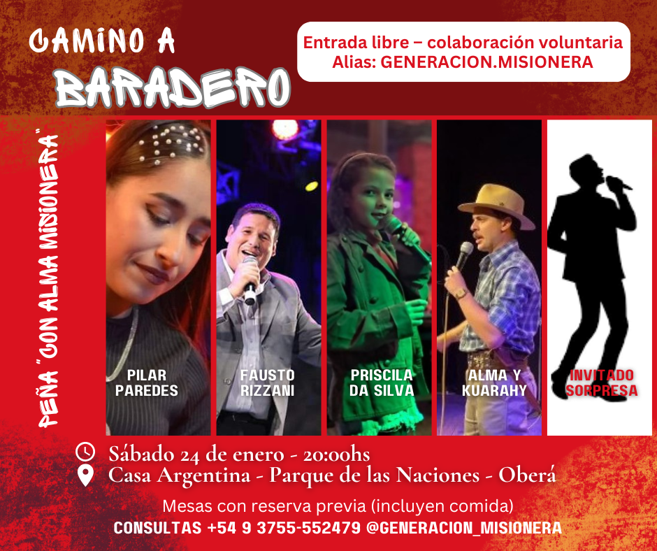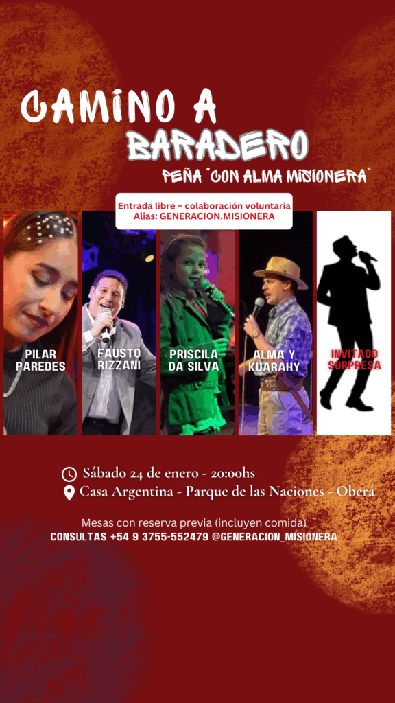 La peña se realizará el sábado 24 de enero, a partir de las 20 horas, en la Casa Argentina, ubicada en el Parque de las Naciones de Oberá, un espacio emblemático para la cultura y la identidad misionera.