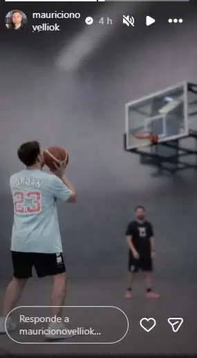 Mientras el sábado "libriano" transcurría, volcánico, la cuenta de IG de Mauricio Novelli mostró dos historias de total distensión: una comiendo hamburguesas, y otra ensayando tiros a un aro de básquet: