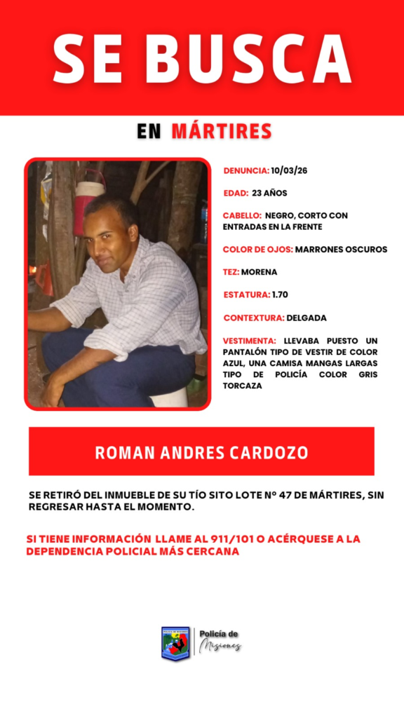 Se solicita cualquier información sobre el paradero de Román Andrés Cardozo, por favor comunicarse al 911.