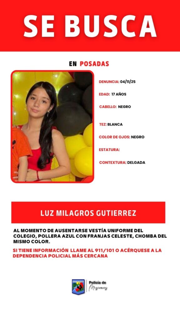 Se solicita cualquier información sobre el paradero de Luz Milagros Gutiérrez