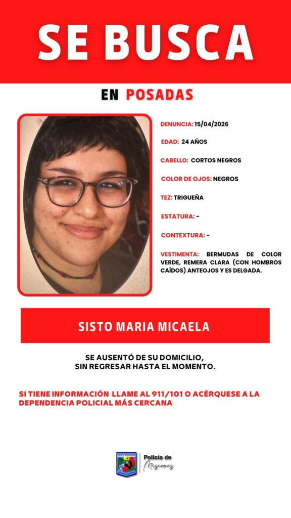 Se busca a Sisto María Micaela se ausentó de su domicilio sin regresar hasta el momento cualquier información comunicarse al 911.