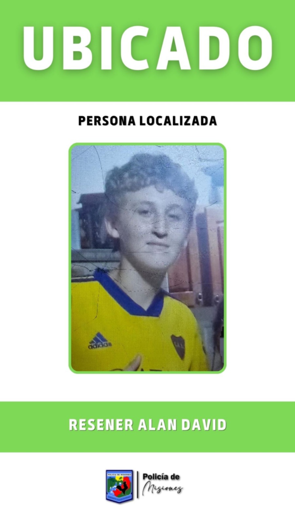 Persona desaparecida fue localizada 11 marzo, 202611 marzo, 2026 Se logro ubicar el paradero de Resener Alan David desparecido en la ciudad de Posadas