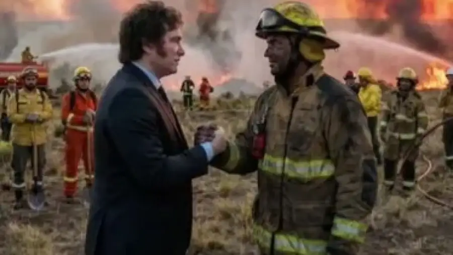 Con menos sofisticación, Milei promovió su propia fake: en sus redes, compartió una imagen generada con inteligencia artificial en donde aparece estrechando la mano de un brigadista forestal. En la foto se leía la leyenda: “Gracias a todos los que trabajaron. Nada más heroico que arriesgar su vida para salvar la de otros". Pero el presidente no viajó al sur.