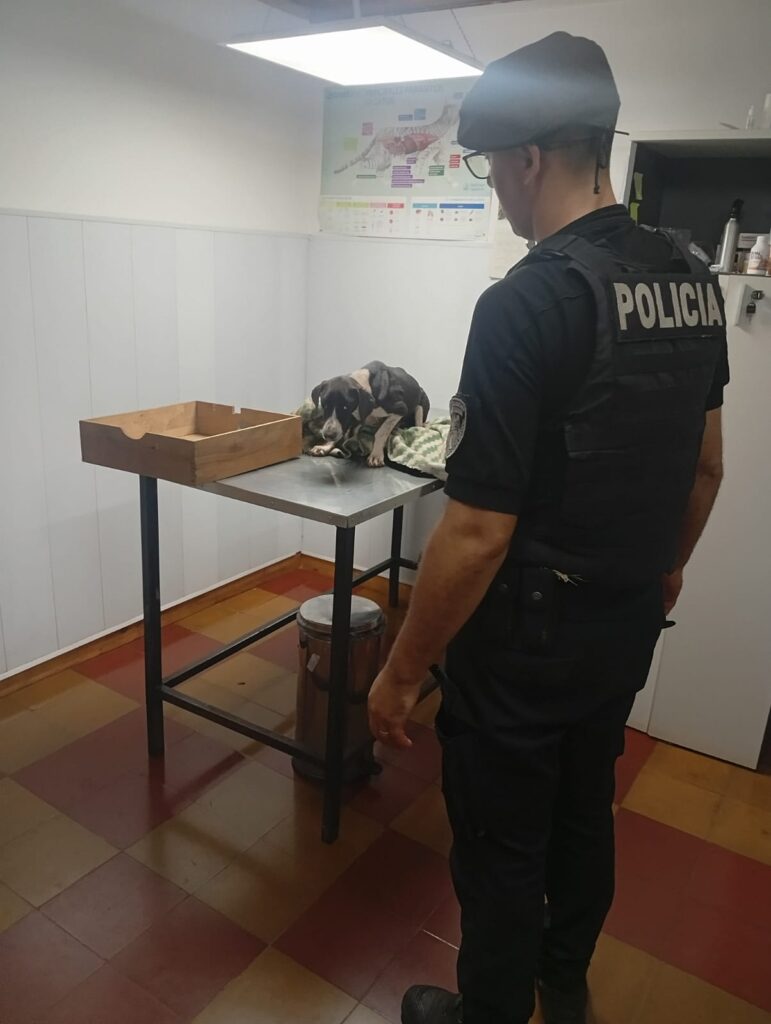 Por pedido de vecinos, la Policía rescató a una perra y sus crías que habrían sido abandonadas desde un vehículo