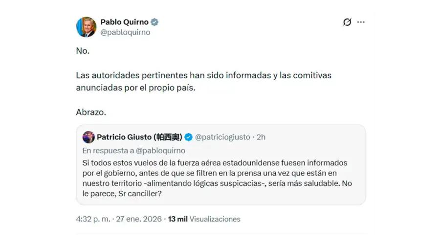 Ante el acelerado aumento de conjeturas y preguntas, el canciller Pablo Quirno decidió dar explicaciones mediante redes sociales.