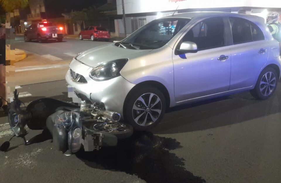El lunes cerca de las 20:35 horas, en la intersección de las calles Jujuy y Belgrano de Posadas, se registró un siniestro vial entre un automóvil Nissan March conducido por María L. C. (30) y una motocicleta Maverick 110 al mando de José Luis P.