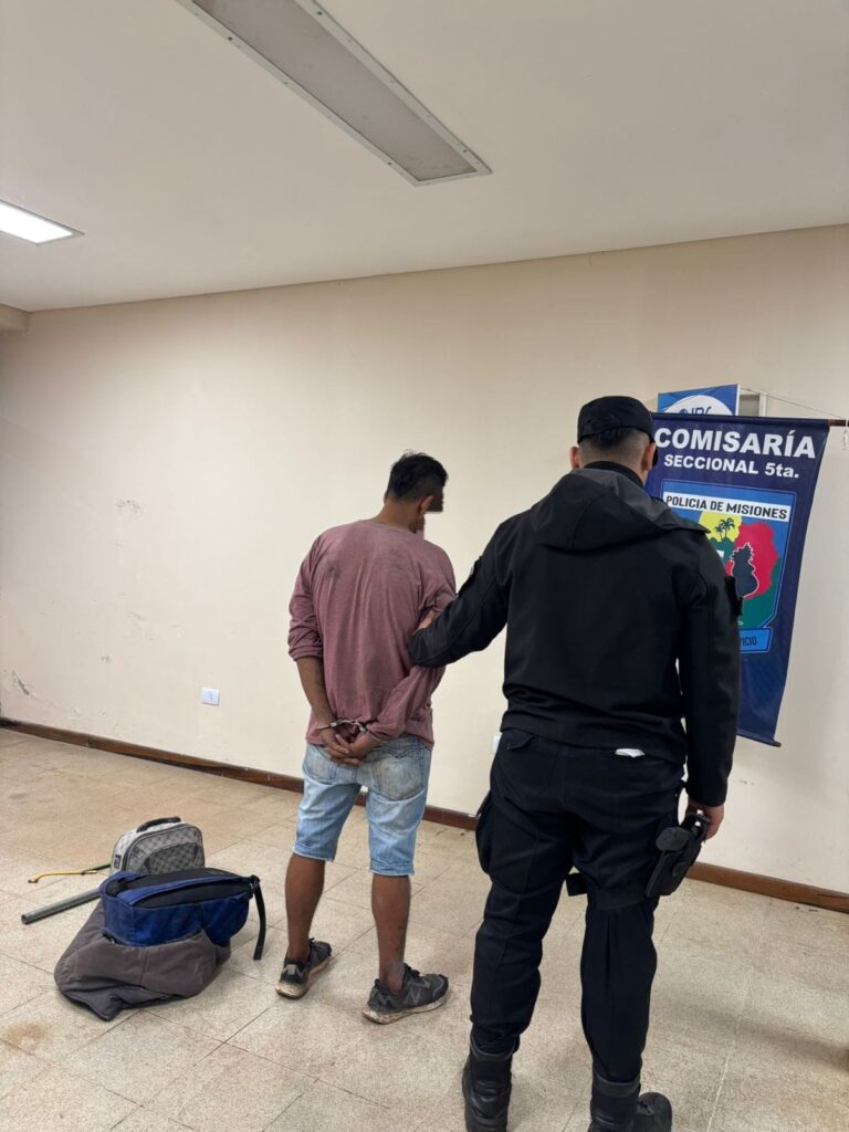 El malviviente fue detenido en el barrio Villalonga de Posadas minutos después de haber cometido un robo en un taller de carpintería, fue rápidamente interceptado por la Policía cuando se encontraba en plena huida con los elementos sustraídos.