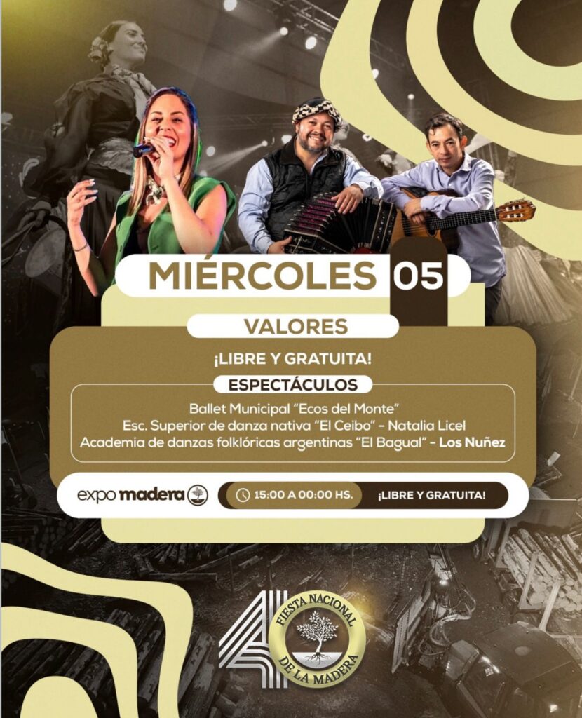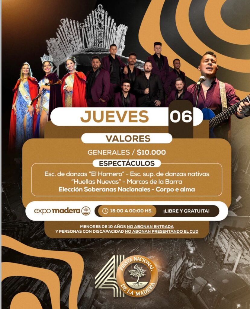 La Fiesta Nacional de la Madera celebra cuarenta años de trayectoria, consolidándose como una de las principales manifestaciones culturales y productivas del centro de Misiones. Nació en 1982 como homenaje a los trabajadores del sector maderero y a las familias vinculadas a esta actividad, y con el tiempo se transformó en un acontecimiento nacional que combina espectáculos, exposición industrial, feria artesanal y jornadas de capacitación. Cada edición reúne tradición, música, gastronomía y cultura, poniendo en valor la identidad misionera y el desarrollo del sector foresto–industrial.