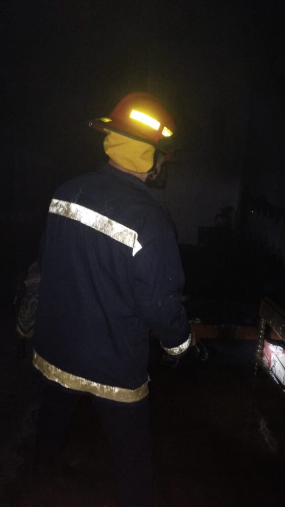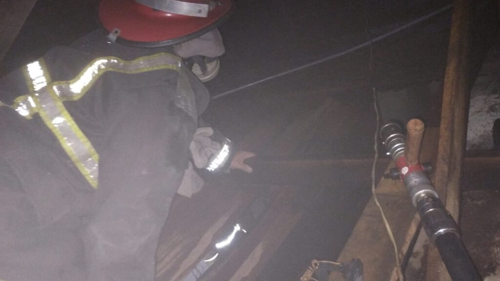 Al llegar al lugar, los uniformados constataron el foco ígneo en un dormitorio, más precisamente en el cielorraso de madera, por lo que se desplegó una línea devanadera de 25 mm para sofocar las llamas y evitar su propagación.