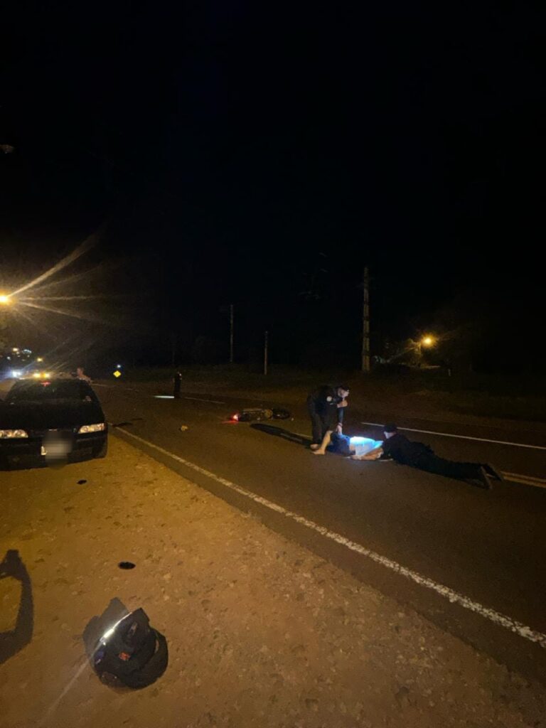 Anoche, cerca de las 23:50 horas, se registró un siniestro vial sobre la Ruta Nacional N.º 12, a la altura del acceso al Parque Industrial de Puerto Rico, donde una motocicleta y un automóvil colisionaron, resultando lesionado el conductor del rodado menor.