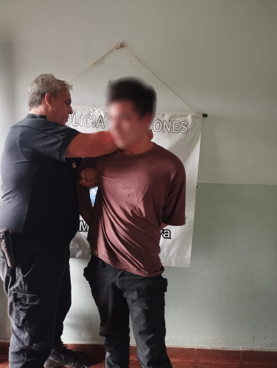Tras un rápido despliegue policial, efectivos de la Comisaría Octava de la Unidad Regional X lograron detener al presunto autor, identificado como Santiago Nahuel M. (23), quien fue alojado en sede policial.