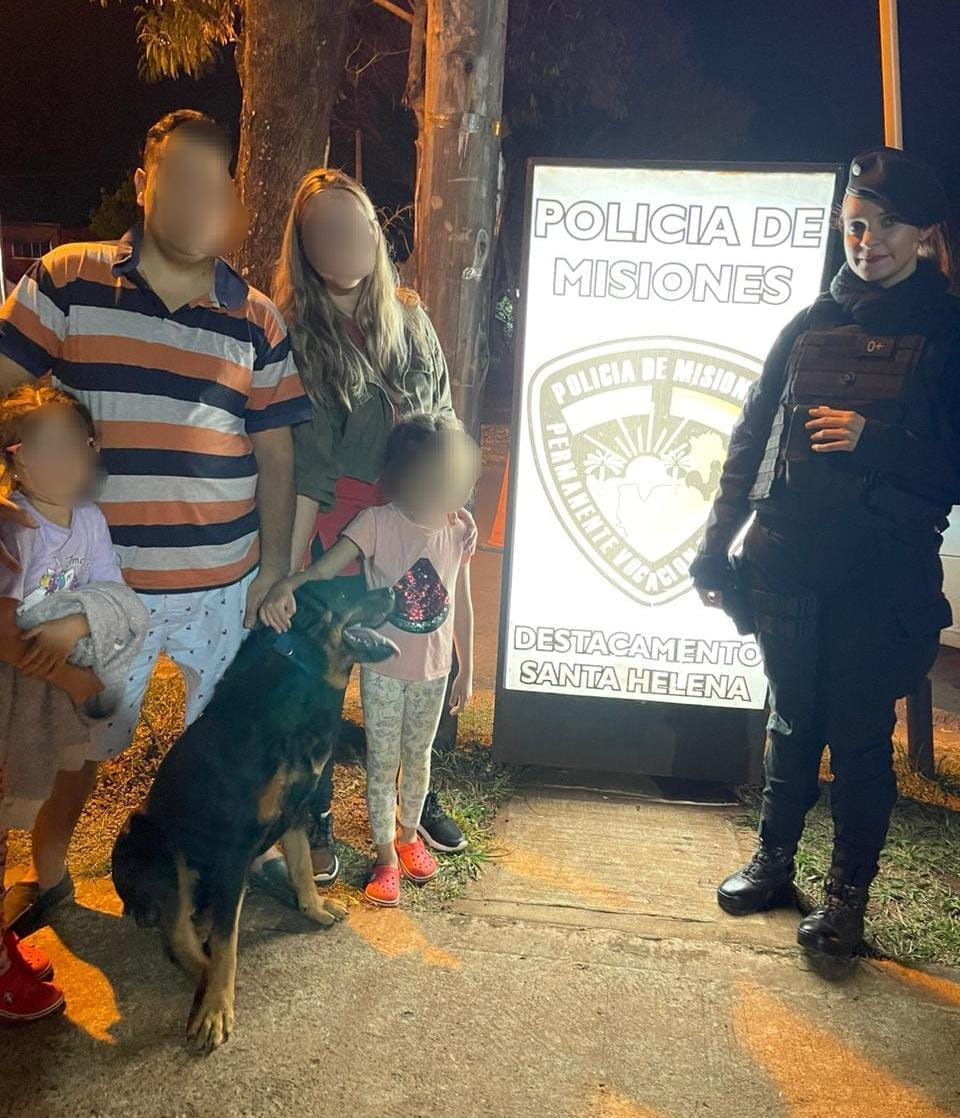 El perro, de poco más de un año, se escapó de la vivienda familiar ubicada en el barrio Complejo Gervasio Artigas de Garupá, y luego de una semana fue hallado por agentes de patrullamiento motorizado en el barrio Belén, donde estaba a resguardo de una mujer de 50 años.