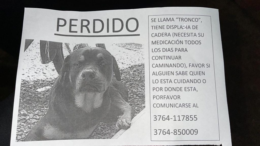 Su dueño, un hombre de 36 años, luego de la búsqueda que se extendió por redes sociales, se comunicó con el titular de la División Motorizada de Garupá relatando que Tronco estaría en un barrio de esa jurisdicción, ya que los internautas daban referencias de haber visto al can deambulando por la zona.
