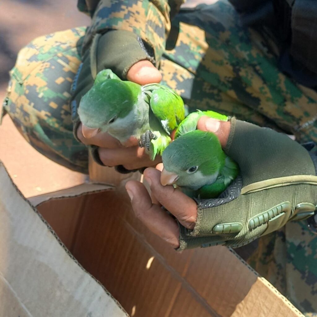 La intervención se originó tras detectarse en la plataforma una publicación donde se ofrecían loros de la especie Myiopsitta monachus, más conocidos como cotorras. A partir de esa información, se montó un operativo de búsqueda en la zona urbana.