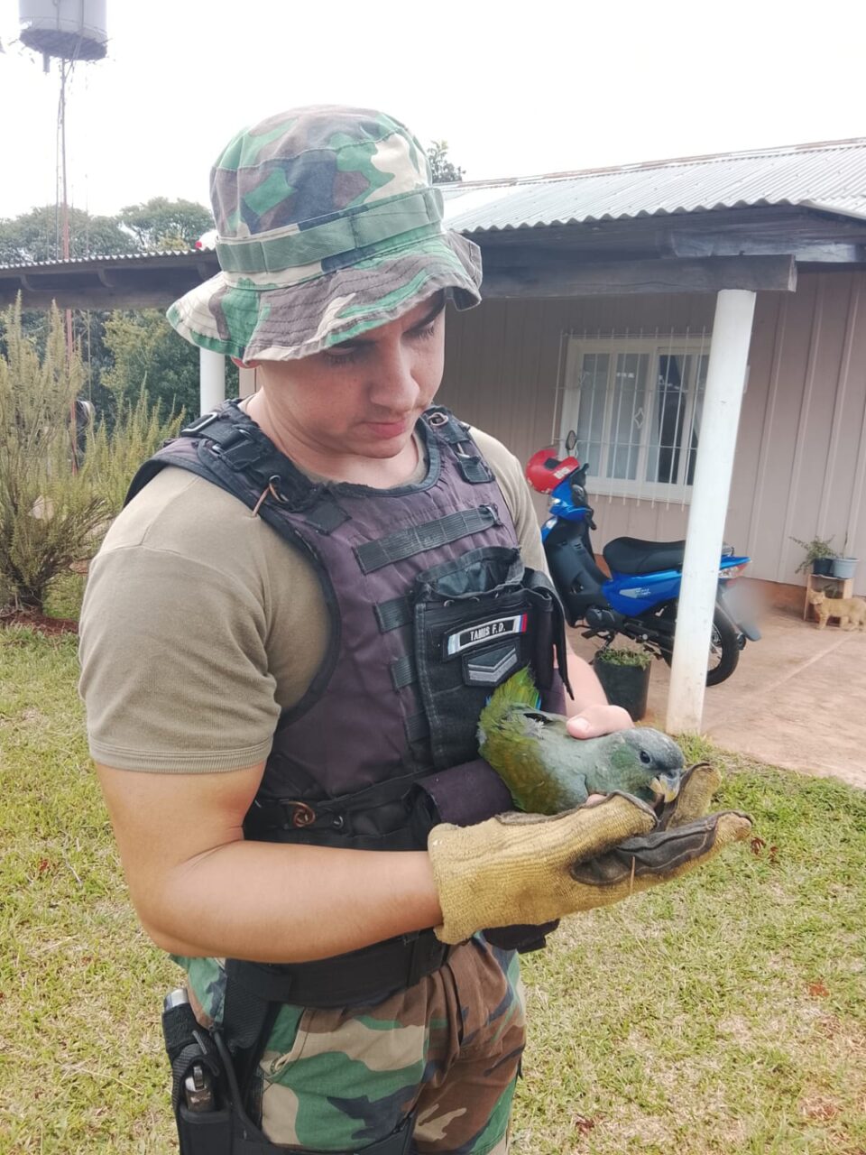 Más tarde, alrededor de las 17:55 horas, personal de la División Defensa del Medio Ambiente y Delitos Rurales de San Vicente rescataron un ejemplar de loro maitaca (Pionus maximiliani) sobre la Ruta Nacional 14, a la altura del kilómetro 972. El ave presentaba las alas cortadas, por lo que fue colocada en una caja de resguardo bajo medidas de bioseguridad y trasladada al Centro de Rescate Ohana de Salto Encantado, donde recibirá atención veterinaria y cuidados para su recuperación
