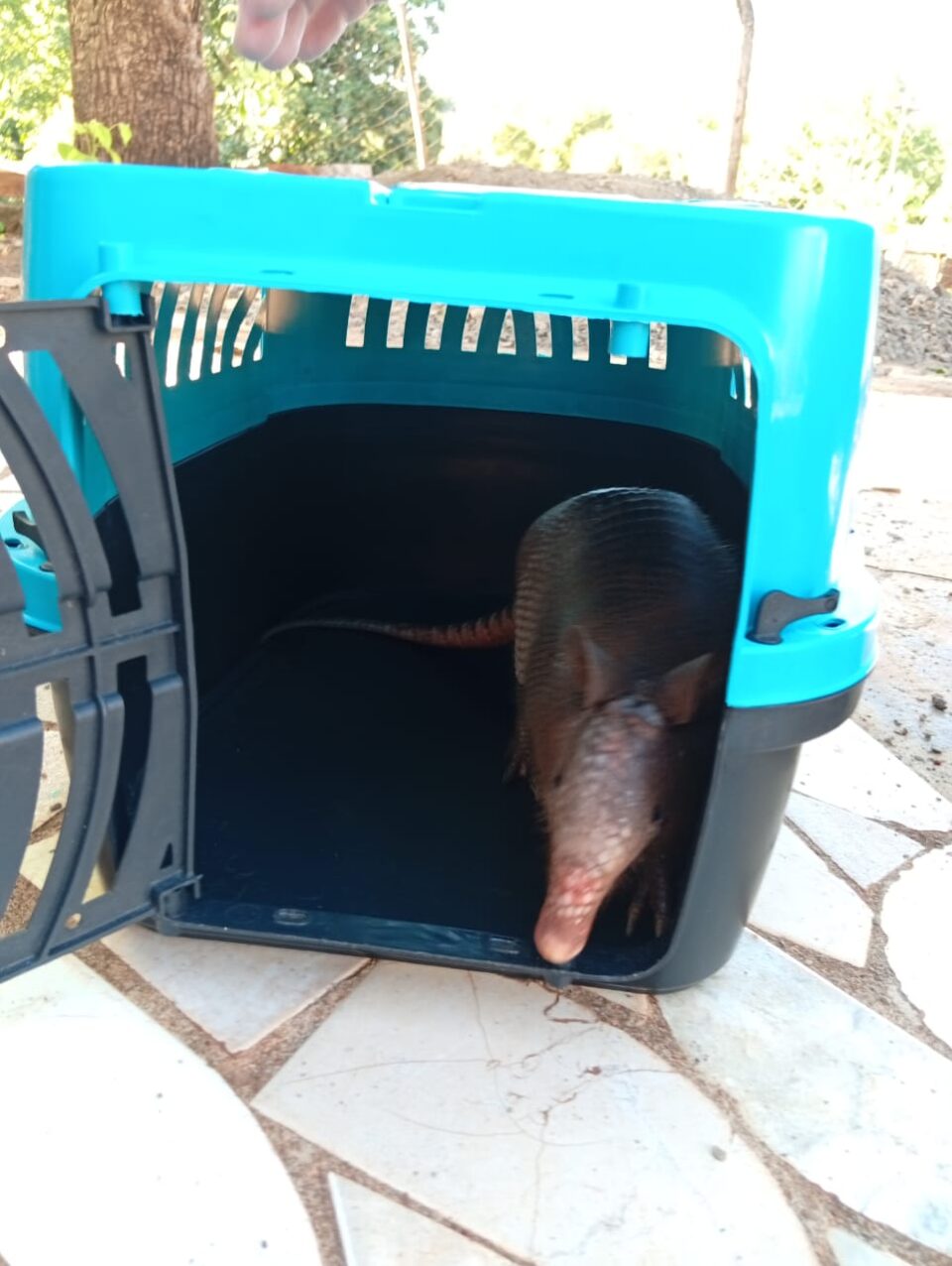Efectivos de la División Delitos Rurales de Jardín América rescataron este sábado por la tarde una cría de tatú mulita (Dasypus hybridus) que se encontraba en riesgo en la zona urbana de la localidad de Corpus.