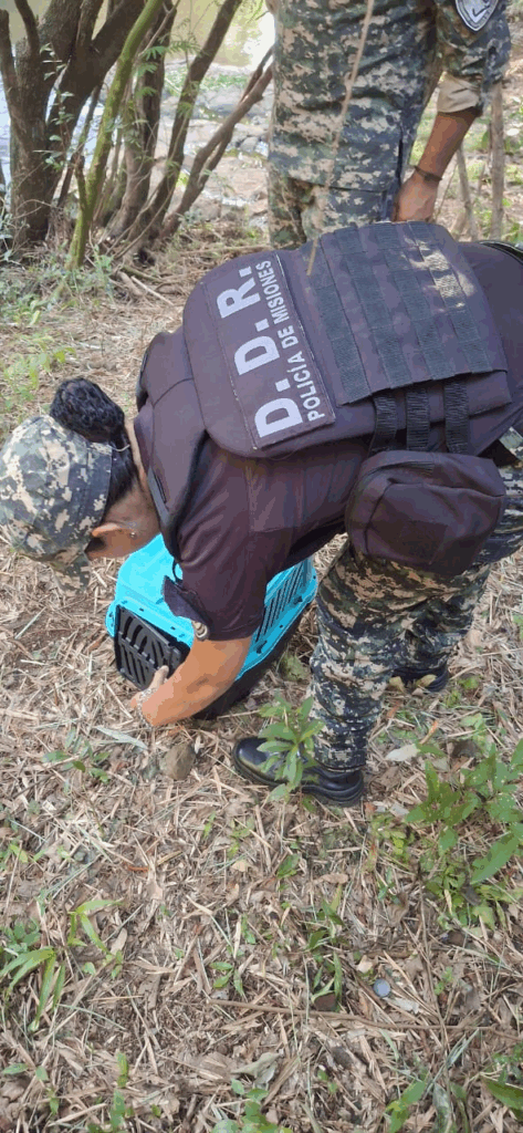 Tras constatar la situación, los uniformados procedieron al resguardo del tatú mulita, verificando que se encontrara en buen estado general, y posteriormente realizaron su liberación en su hábitat natural, garantizando su protección.