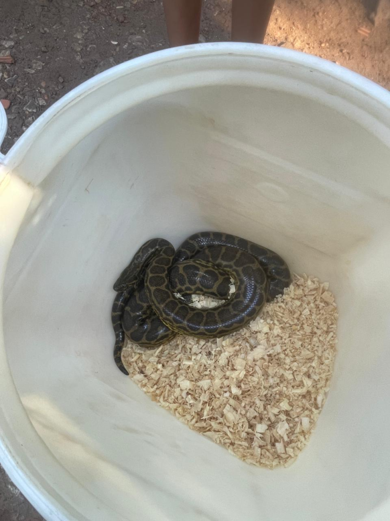 Al arribar, los efectivos constataron la situación y procedieron a la captura controlada del animal, tratándose de una boa curiyú de aproximadamente un metro de longitud, la cual se encontraba desplazándose por la zona, generando preocupación entre los vecinos.