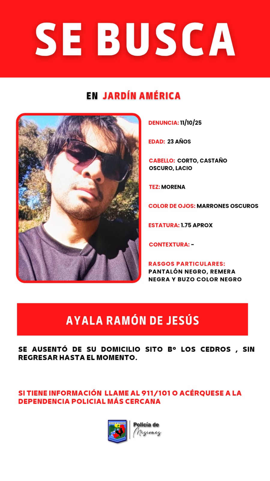 Se solicita cualquier información sobre el paradero de Ayala Ramón de Jesus