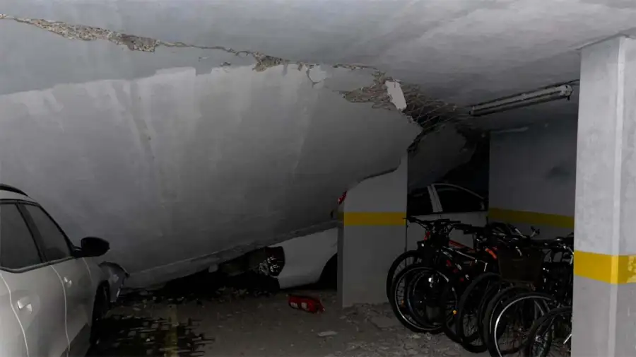 Un derrumbe en un complejo de viviendas ubicado en el barrio porteño de Parque Patricios se produjo en la madrugada de este martes. La edificación tiene tres pisos y se desplomó el techo del estacionamiento que está debajo del patio interno. Unos 60 autos quedaron aplastados por los escombros.