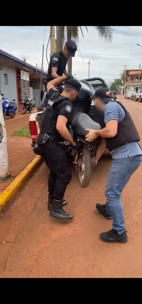 Con orden del Juzgado de Paz local, se llevó adelante un allanamiento en su vivienda ubicada en el Barrio Centro, donde se procedió al secuestro de una motocicleta marca Corven 110 c.c., sin dominio colocado, de color celeste y negro, sindicada como la utilizada para las maniobras.