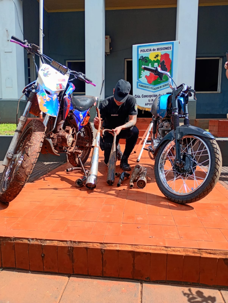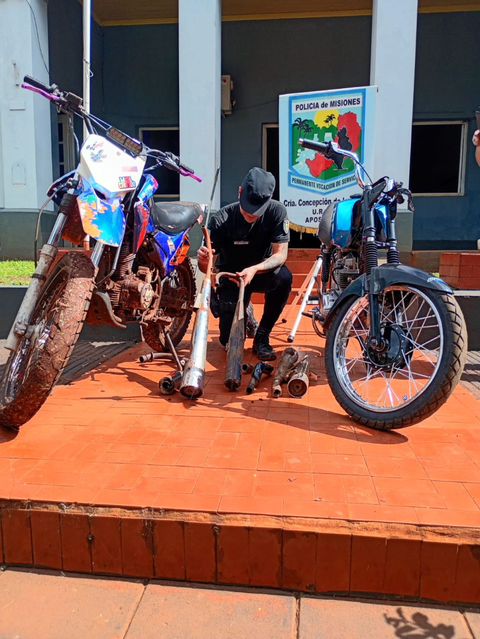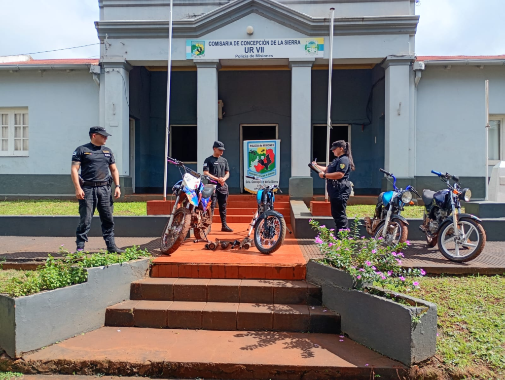 Siete motocicletas fueron secuestradas en distintos procedimientos policiales realizados en Jardín América y Concepción de la Sierra, en el marco de operativos vinculados a conducción temeraria, contraexplosiones, picadas ilegales e infracciones a la Ley Nacional de Tránsito. Los conductores fueron identificados y notificados en las correspondientes causas.