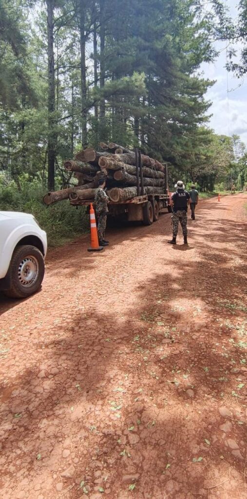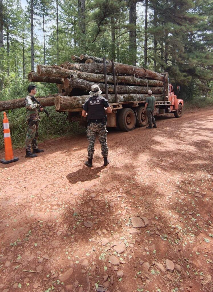 El primer procedimiento se concretó cerca de las 4:40 horas, cuando efectivos de la División Delitos Rurales de Comandante Andresito, junto a guardaparques de la Reserva Cabure-í, interceptaron un camión que circulaba por el Pasaje Península transportando madera nativa.