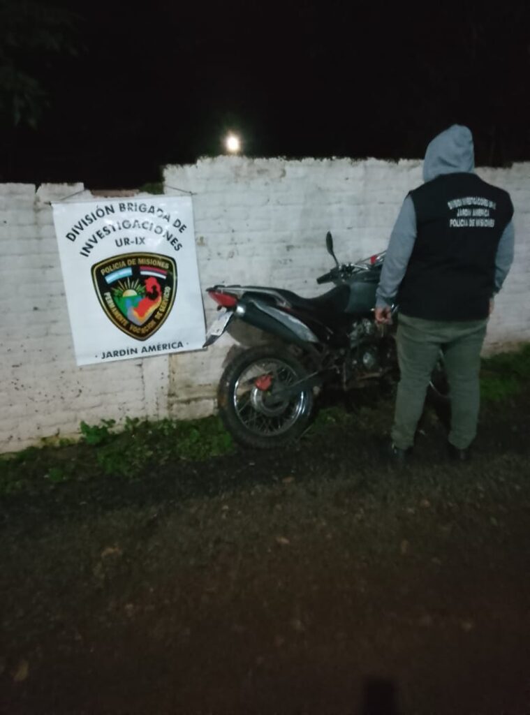 El primer operativo se concretó en Jardín América, donde la División Investigaciones UR-IX esclareció el robo de una Zanella ZR 150 cc denunciado por un vecino de Colonia Flora. El rodado fue hallado oculto entre malezas y en poder de dos adolescentes, Adrián (15) y Braian (16), quienes fueron notificados de su situación legal por orden del Juzgado Correccional y de Menores de Puerto Rico, y luego entregados a sus progenitores.