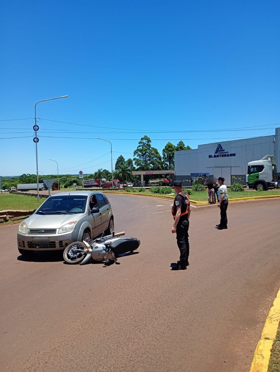 El hecho ocurrió alrededor de las 12:20 e involucró un Ford Fiesta conducido por Norma C. (65), y una motocicleta Keller Cronos guiada por Hugo Z. (50). Por causas que se investigan, ambos rodados colisionaron en la rotonda, resultando lesionado el segundo conductor, quien fue trasladado al nosocomio local para recibir atención médica.