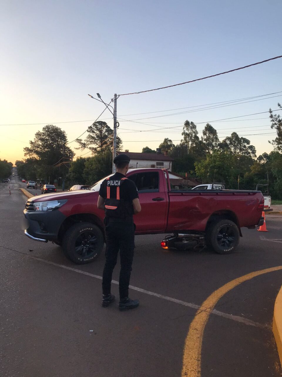 El siniestro involucró a una motocicleta Corven Energy 110cc, conducida por Juan Alberto M.(49), y a una camioneta Toyota Hilux, conducida por Claudio C. (22). El ocupante del rodado menor fue trasladado al hospital local para su atención y evaluación médica.