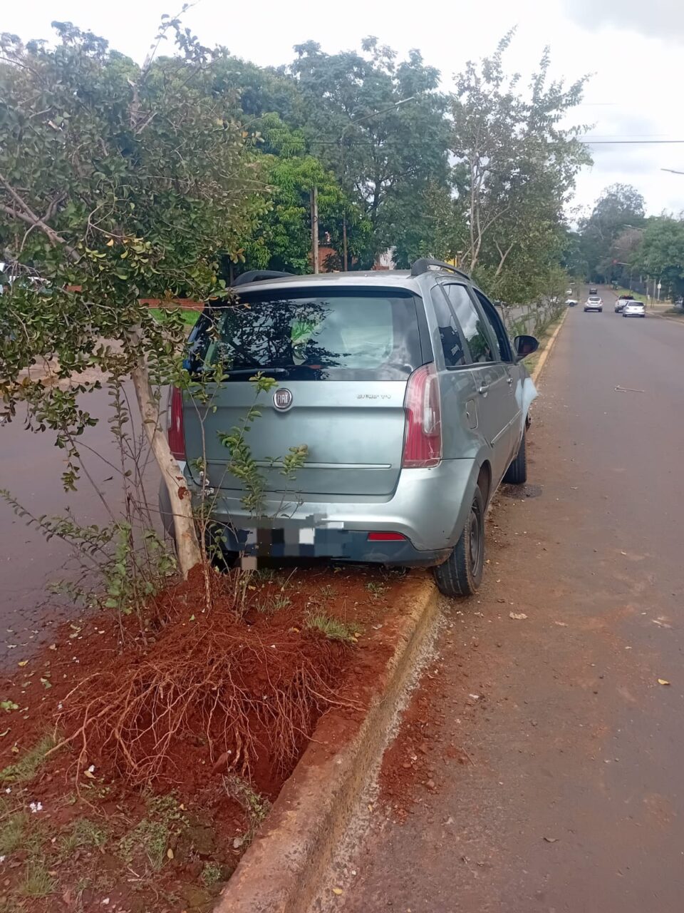 El hecho ocurrió alrededor de las 13:30 horas, a la altura de la avenida San Martín y calle San Javier, donde, por causas que se investigan, un automóvil Fiat Idea colisionó contra el boulevard y quedó detenido en medio de la calzada.