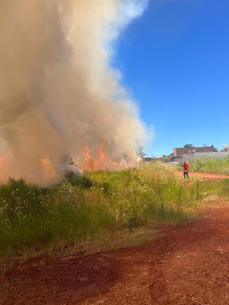 Según informó la División Bomberos Oberá de la UR-II, el fuego fue combatido con líneas devanaderas y mochilas hidrantes, con la colaboración de Bomberos Voluntarios, una máquina retroexcavadora municipal y personal de la Comisaría Seccional Quinta. Se trató de terrenos baldíos, sin propietario identificado.