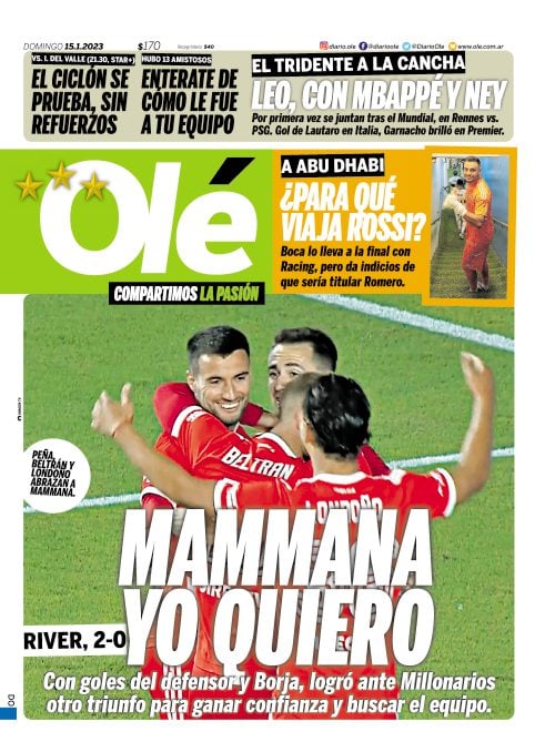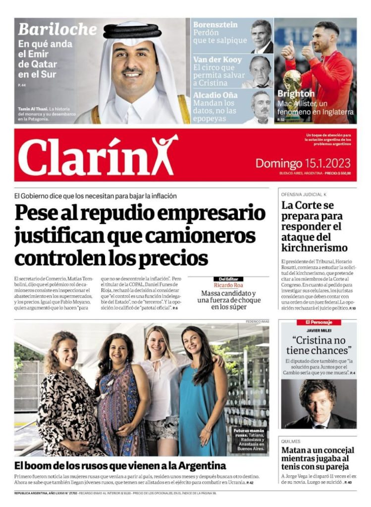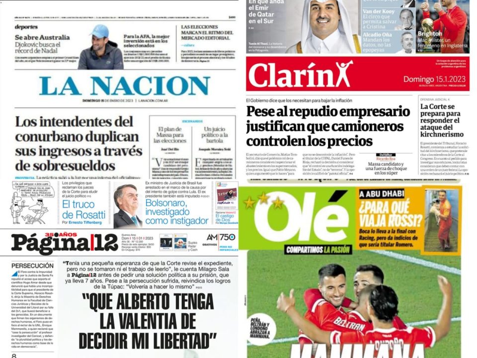 Tapas de los principales diarios nacionales de este domingo 15 de enero 15 enero, 202315 enero, 2023 La Nación Clarín Página 12 Olé
